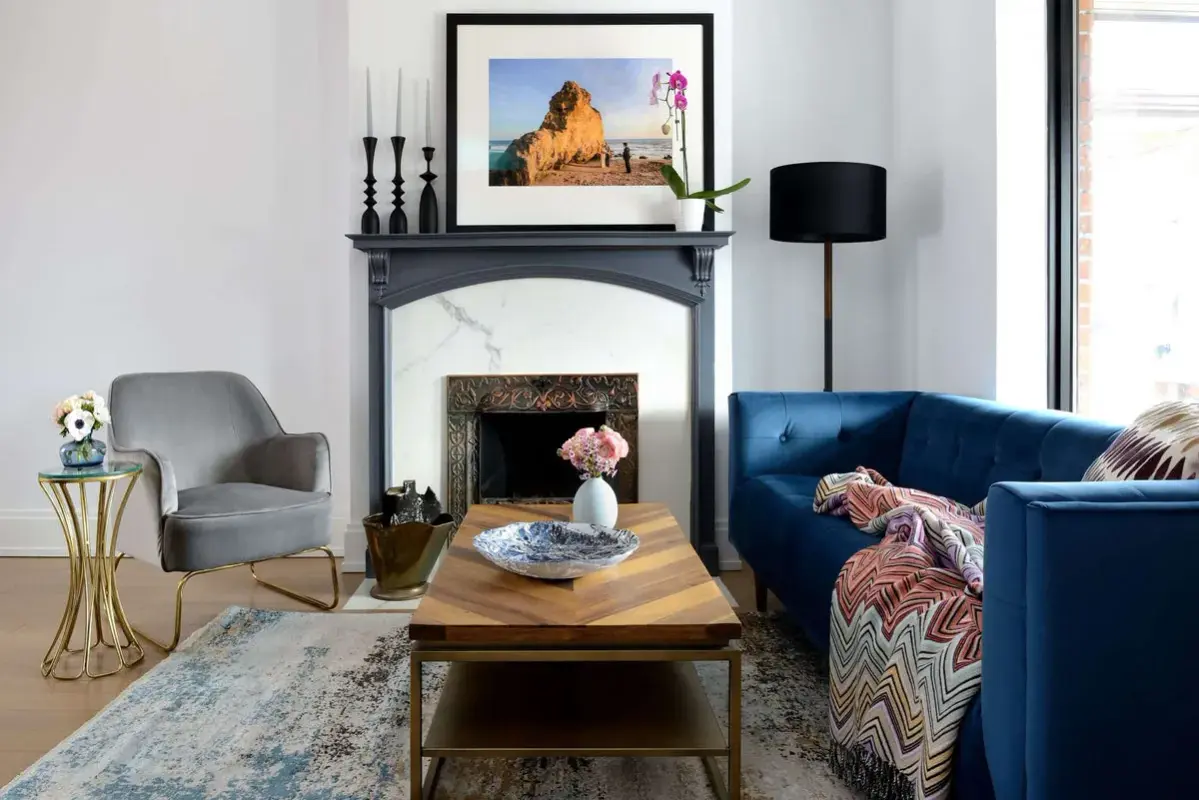 Your primary furniture pieces set the tone. Pick for striking outlines with refined finishes: