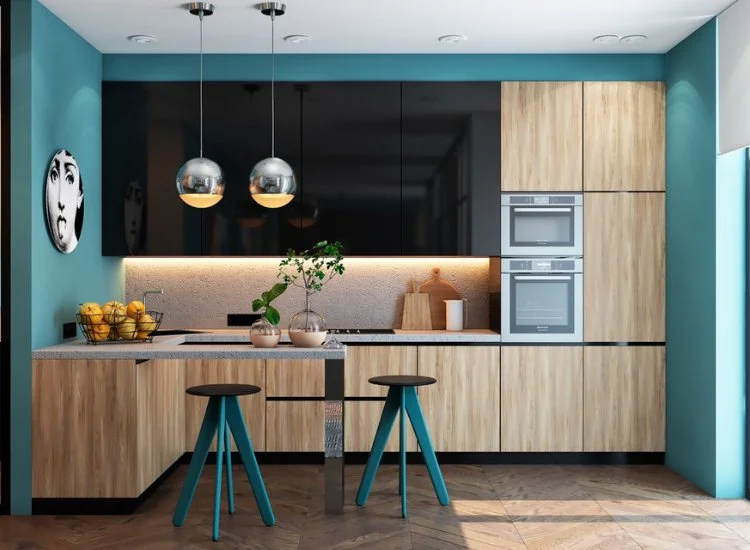 The fact that your kitchen is tiny does not imply that you have to paint the cabinets a monochromatic hue. Your room can benefit from a splash of color. The turquoise jewel of the kitchen in the fictional Arconia apartment on the set of Only Murders in the Building serves as an inspiration. According to Jung, "because the footprint is small, you can be fearless in a small kitchen." "I advise taking a risk." Hayslett concurs, adding that mauves, greens, and yellows are additional striking kitchen color options for little areas.